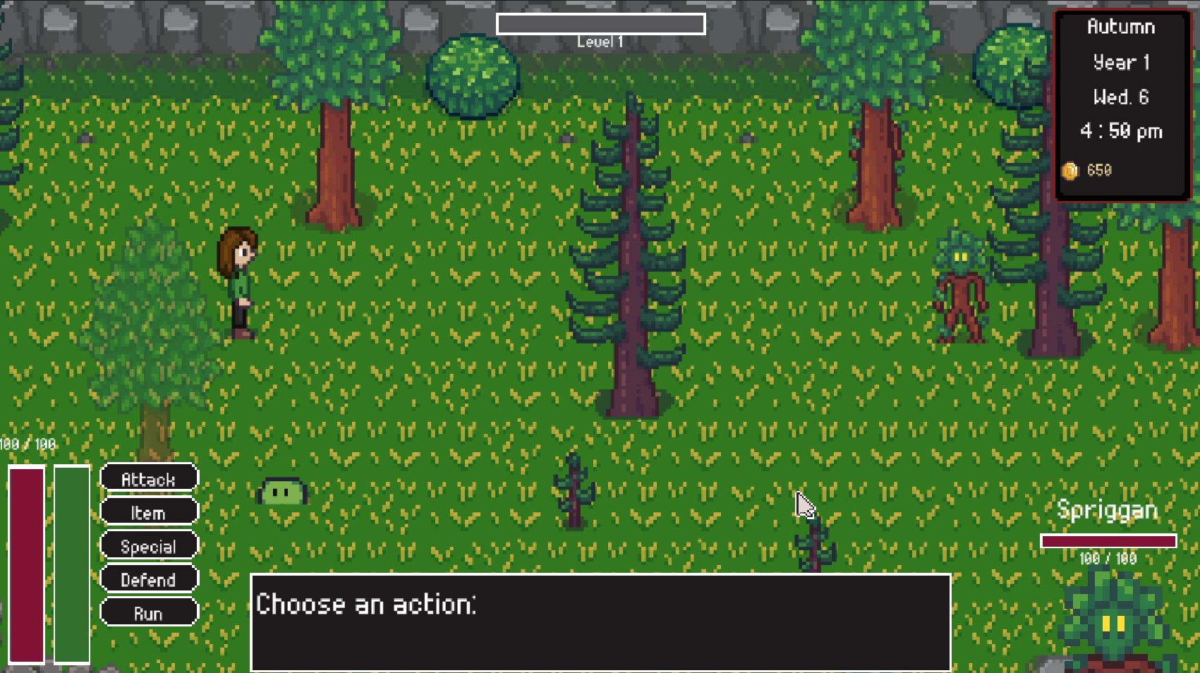 - Turn-Based Battles — strategic combat system with player and enemy turns, status effects, use items and special abilities