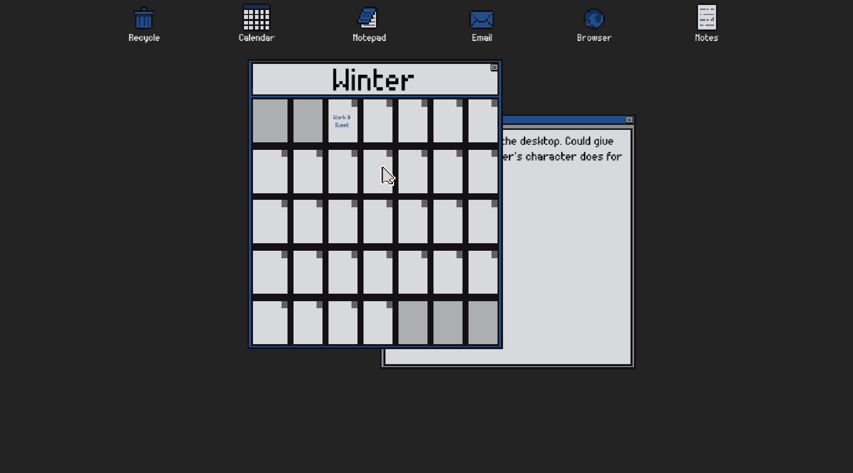 - In-Game Desktop — a lore delivery system with access to various minimal in-game applications